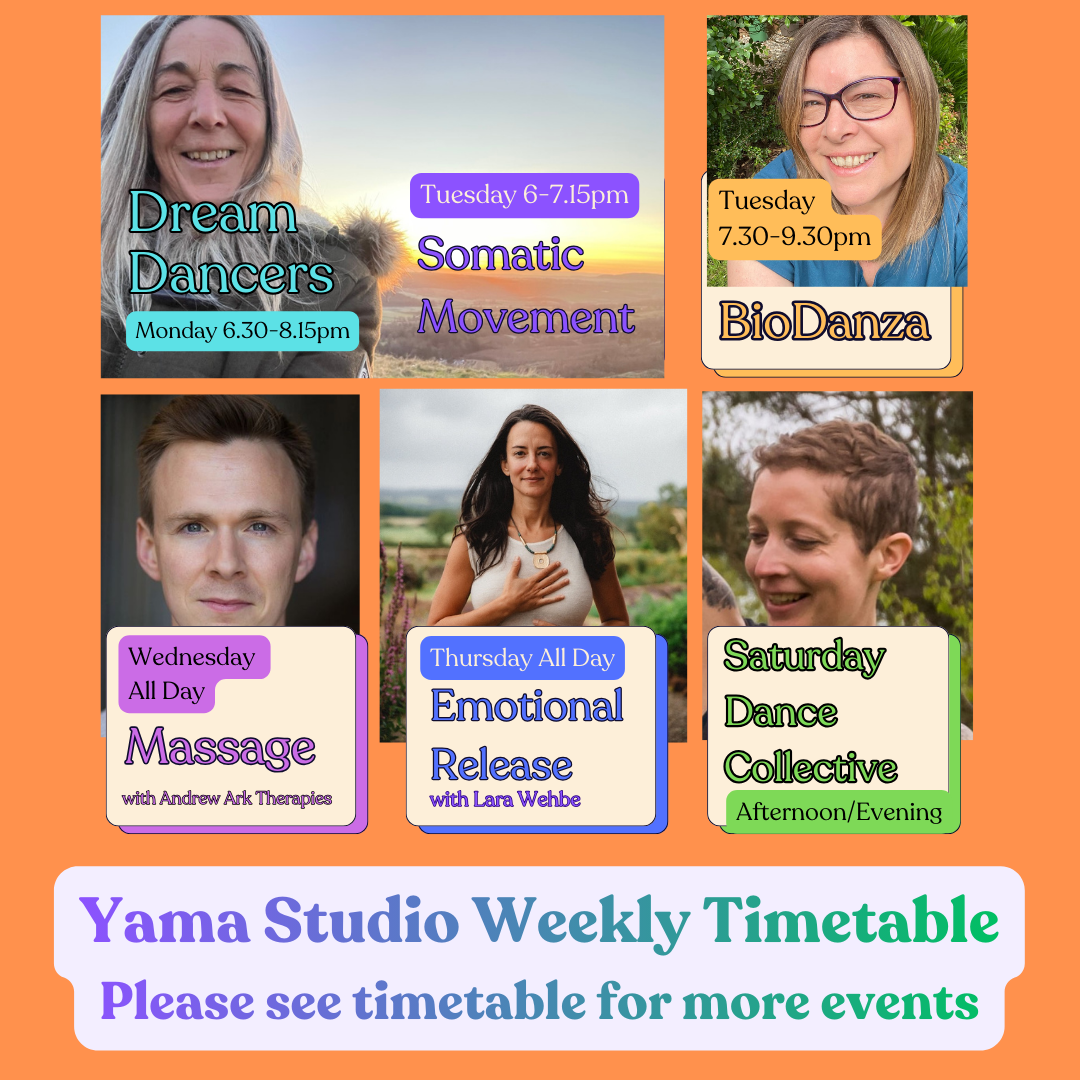 YAMA is a warm inviting studio where you can practice coming back to the body in a safe and healthy environment. We offer healing journeys through various forms of Yoga, Meditation,, Movement Medicine, BioDanza, 5Rhythms and Open Floor, not to mention the variety of ongoing workshops.